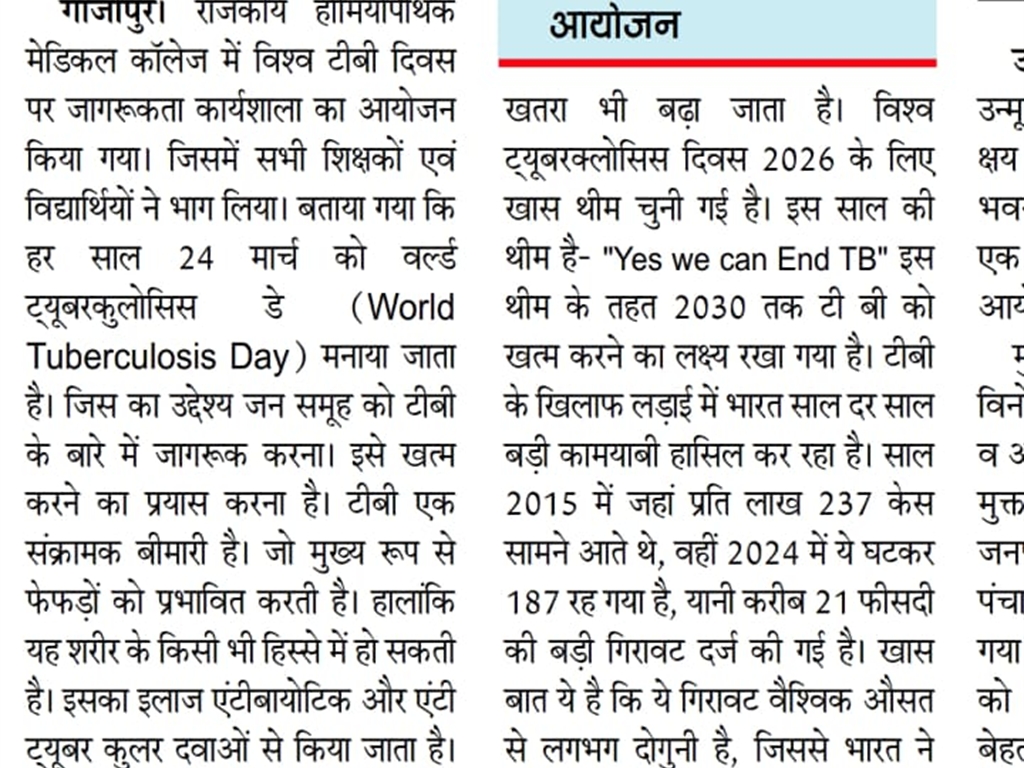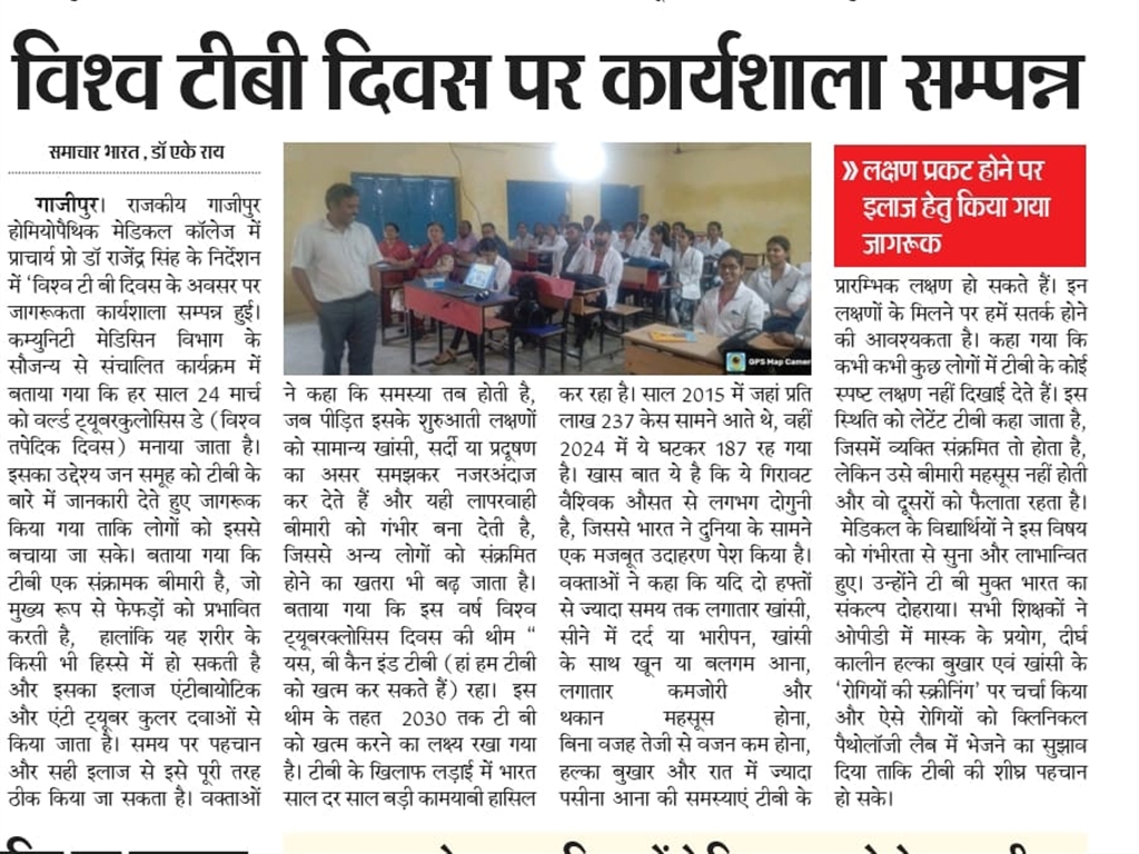 राजकीय गाजीपुर होम्योपैथिक मेडिकल कॉलेज व हॉस्पिटल,गाजीपुर में बसंत पंचमी के अवसर पर माँ सरस्वती की पूजा एवं हवन कर बसंत पंचमी धूम धाम से मनाई गई